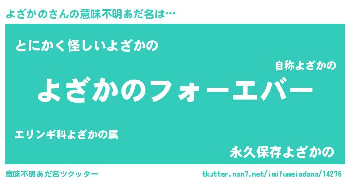 | 胡散臭い通販商品みたいなあだ名 | 『幸せが訪れる高級そうな壺…その名も「よざかの」』 |