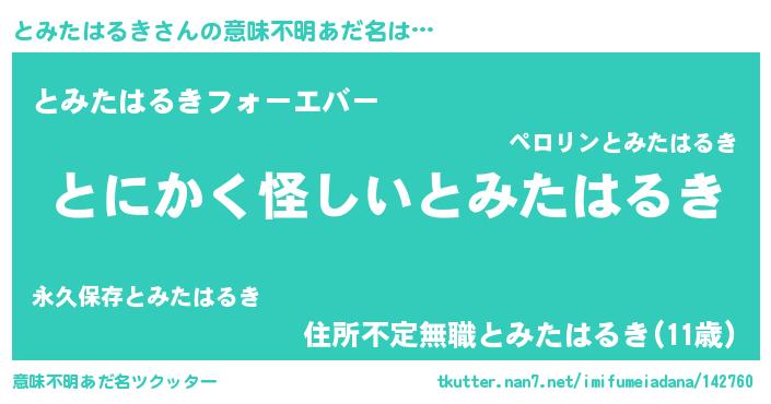 | 女子向けラノベタイトル風あだ名 | 『とみたはるき様がみてる』 |