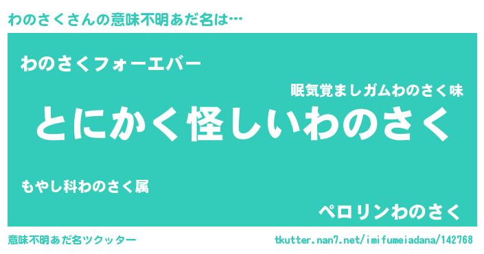 | 女子向けラノベタイトル風あだ名 | 『わのさくは平凡を望む』 |