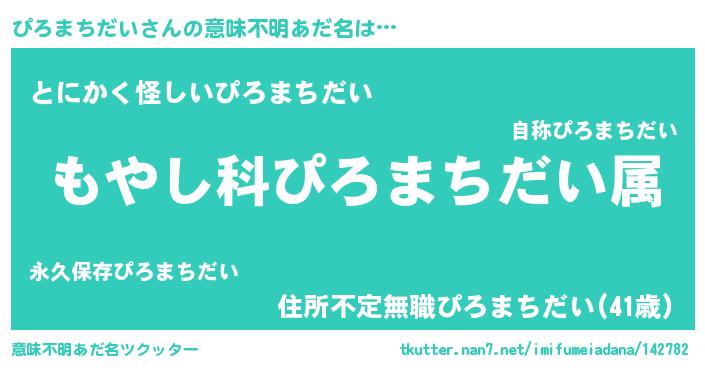| 男性向けラノベタイトル風あだ名 | 『転生したらぴろまちだいだった件』 |