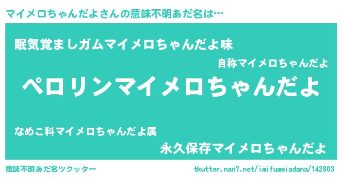 | 男性向けラノベタイトル風あだ名 | 『マイメロちゃんだよの憂鬱』 |