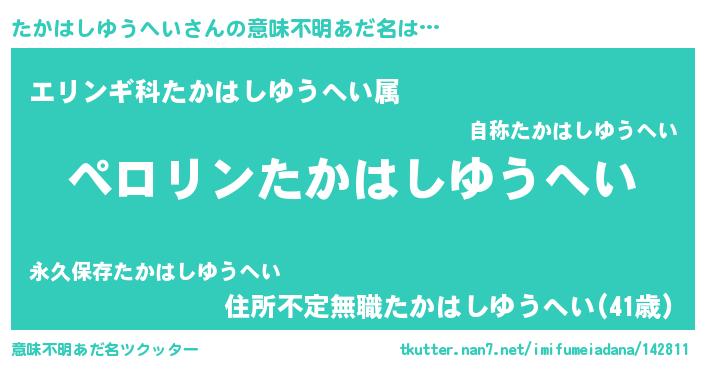 | 男性向けラノベタイトル風あだ名 | 『たかはしゆうへいの憂鬱』 |