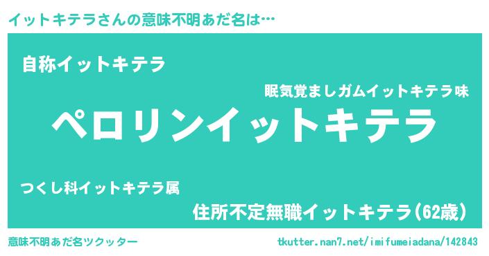 | 男性向けラノベタイトル風あだ名 | 『イットキテラアートオンライン』 |