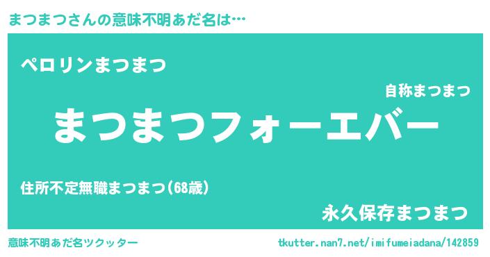 | 女子向けラノベタイトル風あだ名 | 『まつまつの雑貨屋さん』『闇のまつまつ』 |