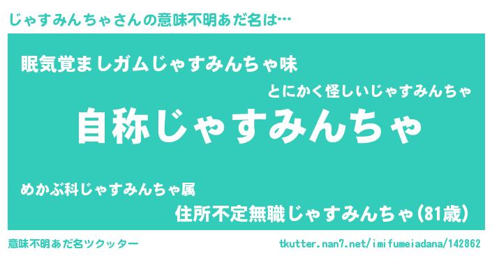 | 男性向けラノベタイトル風あだ名 | 『Re:じゃすみんちゃから始める異世界生活』 |