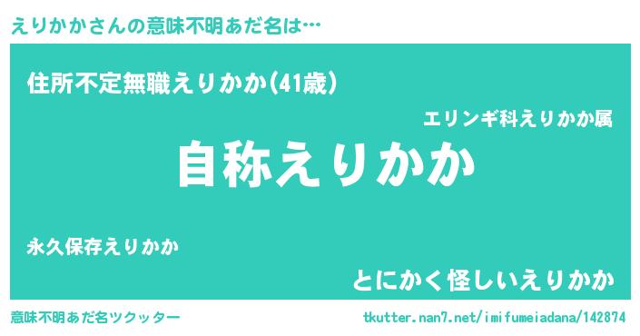 | 男性向けラノベタイトル風あだ名 | 『Re:えりかかから始める異世界生活』 |