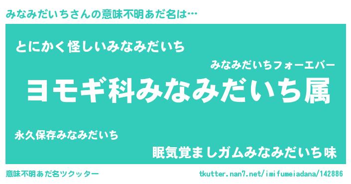 | 男性向けラノベタイトル風あだ名 | 『うちのみなみだいちが世界を掌握している!』 |
