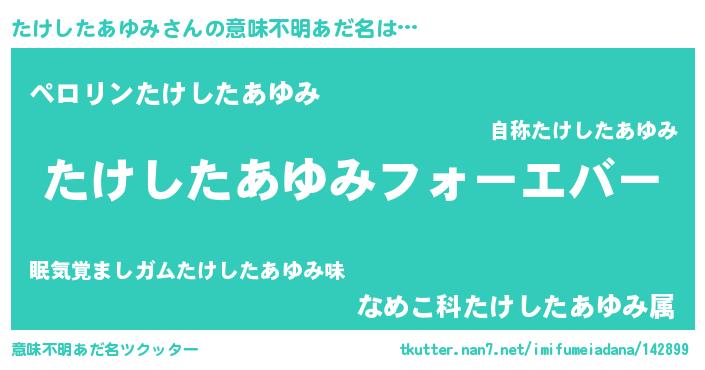 | 肩書あだ名 | 『たけしたあゆみ総理大臣』 |