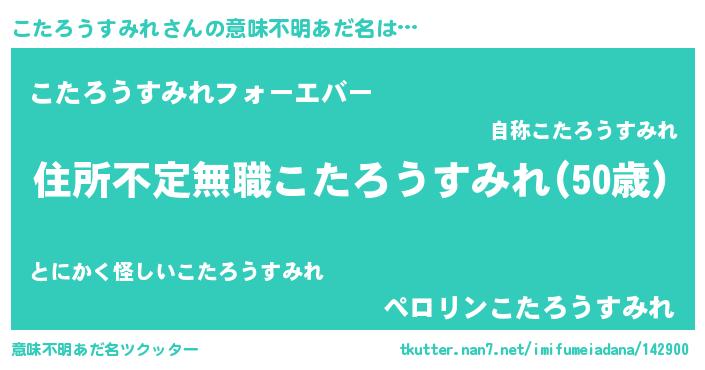 | 男性向けラノベタイトル風あだ名 | 『うちのこたろうすみれが世界を掌握している!』 |