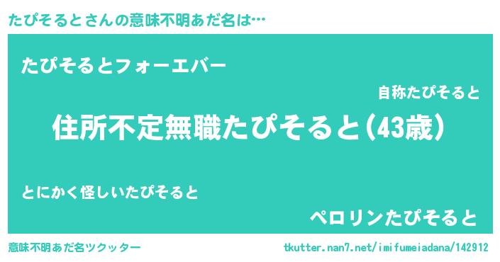 | 男性向けラノベタイトル風あだ名 | 『この素晴らしい世界にたぴそるとを!』 |