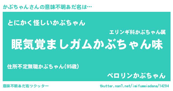| 男性向けラノベタイトル風あだ名 | 『ノーゲーム・ノーカブチャン』 |