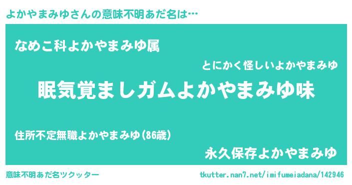 | ヘコむあだ名 | 『よかやまみゆ(遠い目)』『よかっ子』 |