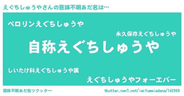 | 欧米人風あだ名 | 『えぐちしゅうや・ステッグマイヤー』 |