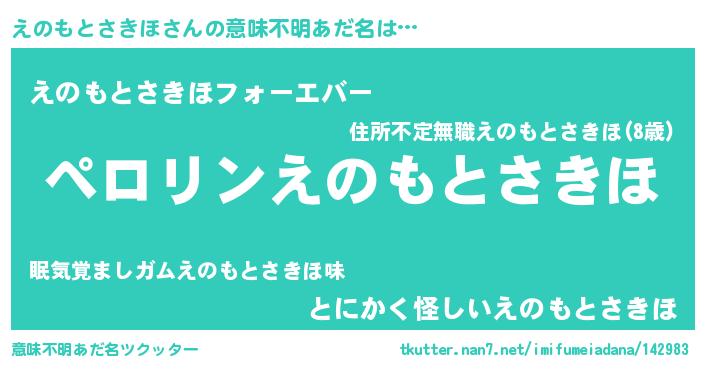 | 男性向けラノベタイトル風あだ名 | 『えのもとさきほの憂鬱』 |