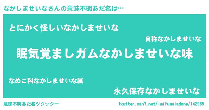 | ポケモン風あだ名 | 『ナックウザ』『ヒナカシマセイナ』 |