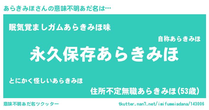 | ヘコむあだ名 | 『あらきみほ(笑)』『あらを』 |