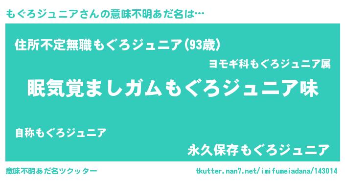 | 男性向けラノベタイトル風あだ名 | 『おまえをオタクにしてやるから、俺をもぐろジュニアにしてくれ! 』 |