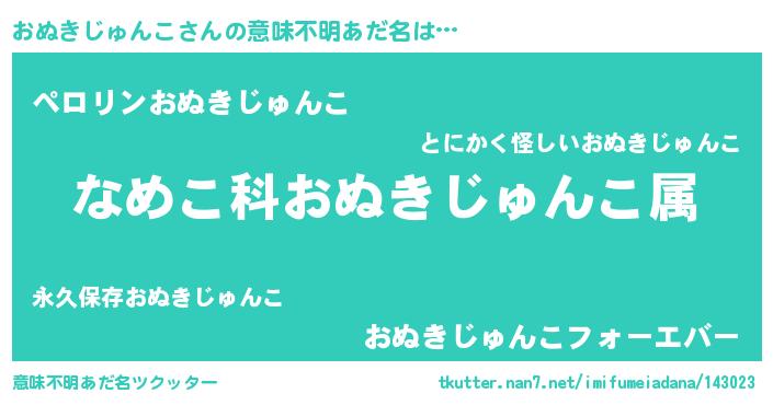 | 男性向けラノベタイトル風あだ名 | 『転生したらおぬきじゅんこだった件』 |