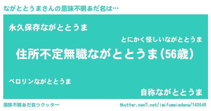 | 女子向けラノベタイトル風あだ名 | 『乙女ゲームの破滅フラグしかない悪役ながととうまに転生してしまった…』 |