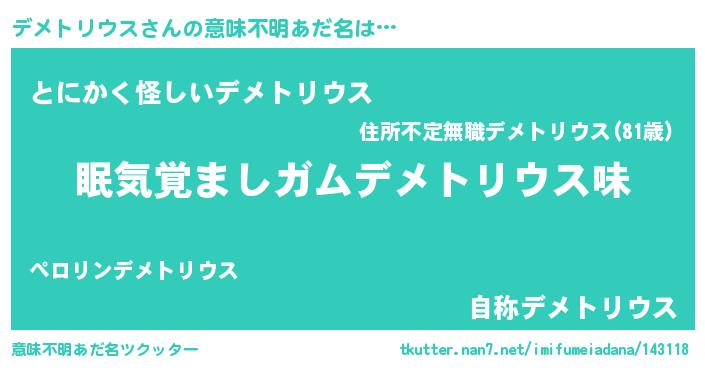 | ヒーロー風カッコイイあだ名 | 『正義の使者デメトリウス』 |