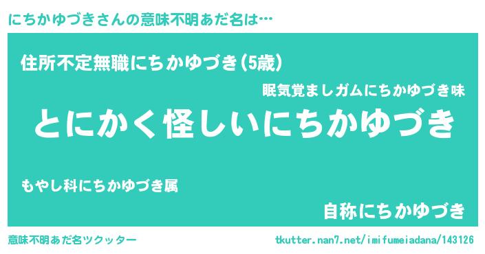 | 女子向けラノベタイトル風あだ名 | 『首の姫と首なしにちかゆづき』 |