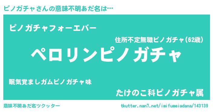 | ファンタジー風あだ名 | 『ピノフェル』『エターナルピノガチャー』 |