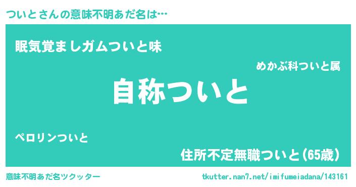 | 欧米人風あだ名 | 『ケンブリッジついと』『ダニエルついと』 |