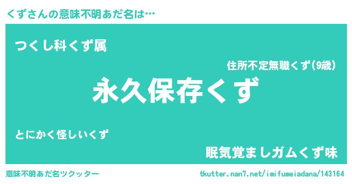 | 男性向けラノベタイトル風あだ名 | 『くずという概念が存在しない退屈な世界 』 |