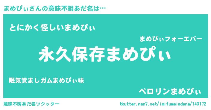 | 男性向けラノベタイトル風あだ名 | 『まめぴぃに滅ぼされるだけの簡単なお仕事です』 |