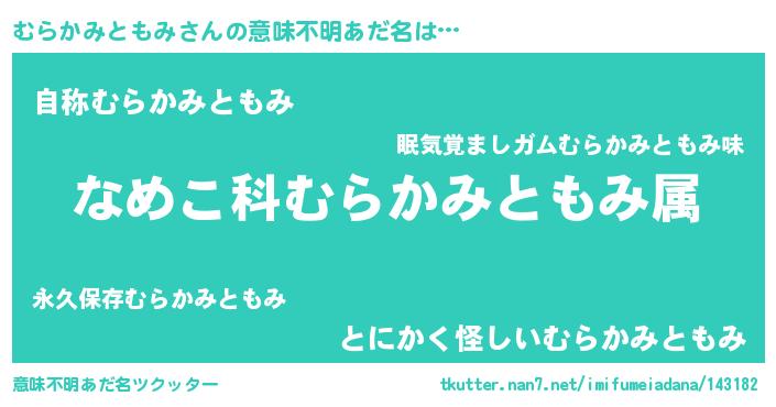 | 男性向けラノベタイトル風あだ名 | 『転生したらむらかみともみだった件』 |