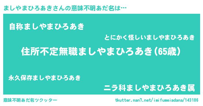 | 欧米人風あだ名 | 『ましやまひろあき・ステッグマイヤー』 |