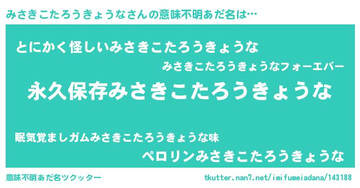 | ヘコむあだ名 | 『みさきこたろうきょうな(遠い目)』 |