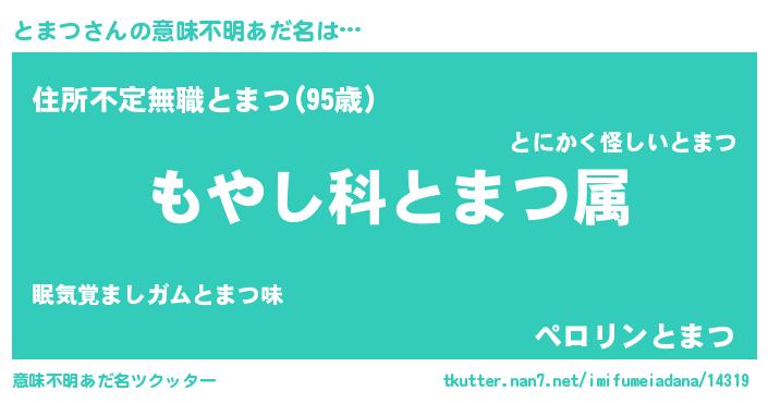 | 男性向けラノベタイトル風あだ名 | 『転生したらとまつだった件』 |