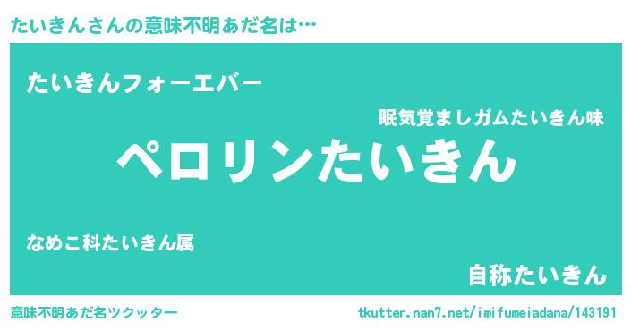 | 2回繰り返すあだ名 | 『たいたい』『たぷたぷ』『たたいい』 |