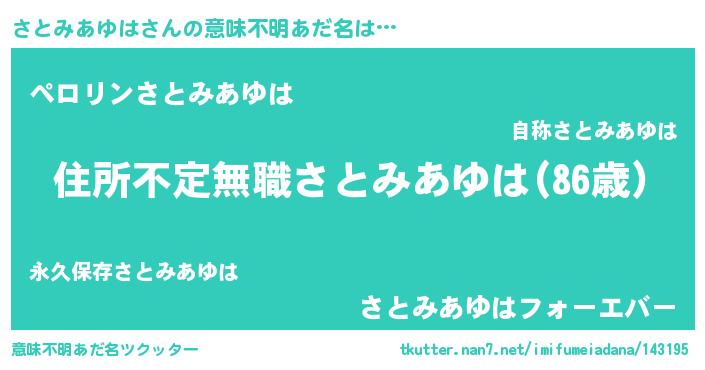 | 女子向けラノベタイトル風あだ名 | 『乙女ゲームの破滅フラグしかない悪役さとみあゆはに転生してしまった…』 |