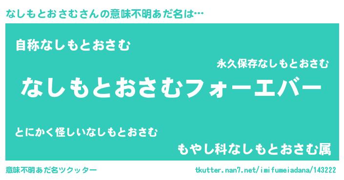 | ファンタジー風あだ名 | 『エターナルナシモトオサムー』 |