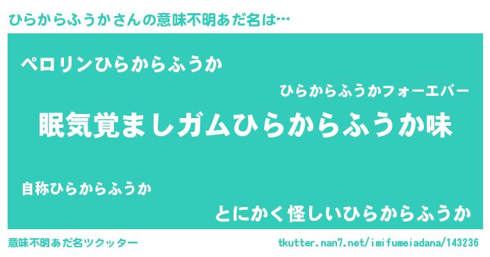 | 男性向けラノベタイトル風あだ名 | 『ノーゲーム・ノーヒラカラフウカ』 |