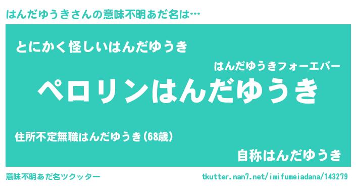 | 胡散臭い通販商品みたいなあだ名 | 『必ず成功するブレスレット…その名も「はんだゆうき」』 |