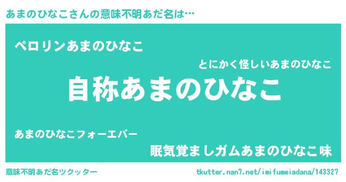 | 欧米人風あだ名 | 『ケンブリッジあまのひなこ』 |