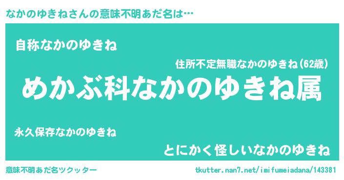 | 男性向けラノベタイトル風あだ名 | 『ナカノユキネスレイヤー』 |