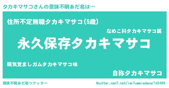 | 男性向けラノベタイトル風あだ名 | 『タカキマサコという概念が存在しない退屈な世界 』 |