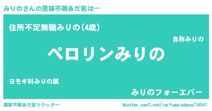 | 男性向けラノベタイトル風あだ名 | 『みりのの憂鬱』『はたらくみりのさま!』 |
