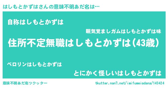 | 胡散臭い通販商品みたいなあだ名 | 『あなたにだけ特別に提供する限定10本のレアな日本酒…その名も「はしもとかずは」』 |