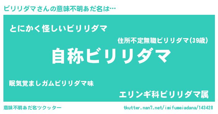 | 欧米人風あだ名 | 『ケンブリッジビリリダマ』 |