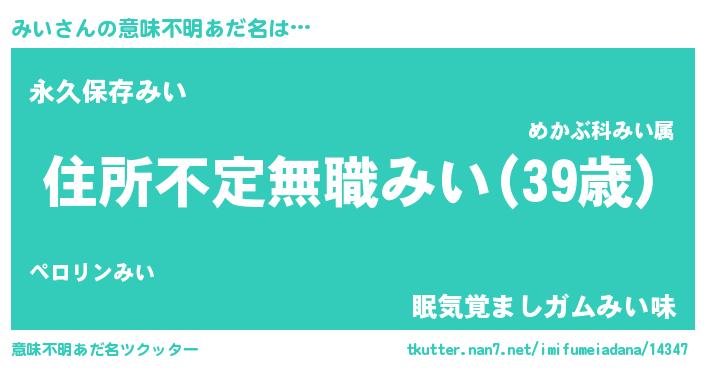 | 男性向けラノベタイトル風あだ名 | 『魔弾の王とみい』『はたらくみいさま!』 |