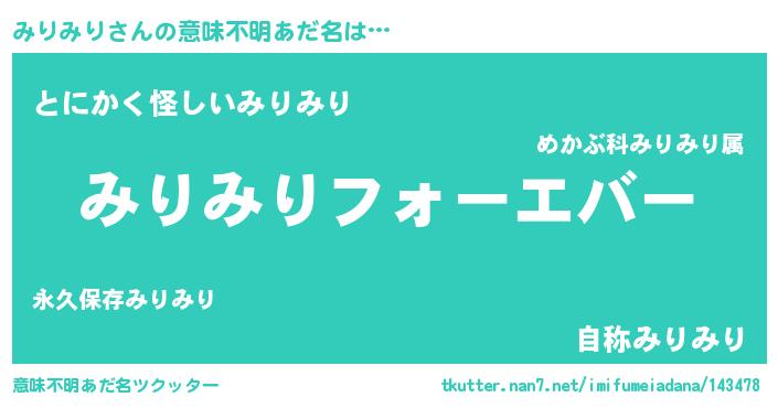 | ファンタジー風あだ名 | 『エターナルミリミリー』『ゼミリトゥ』 |