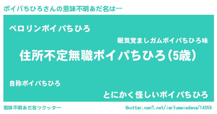 | ヒーロー風カッコイイあだ名 | 『仮面ボイダー』『スーパーボイパチヒロ』 |