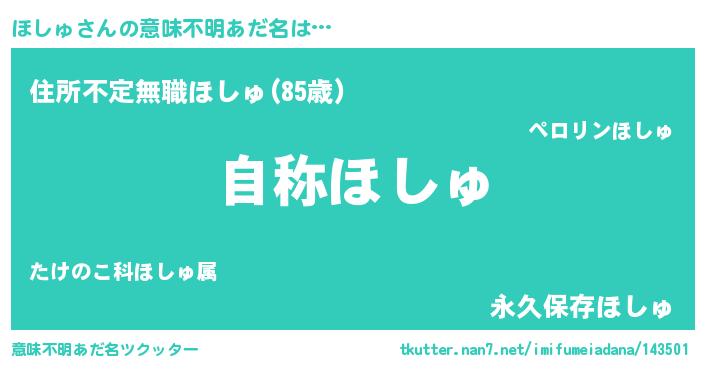 | 男性向けラノベタイトル風あだ名 | 『Re:ほしゅから始める異世界生活』 |