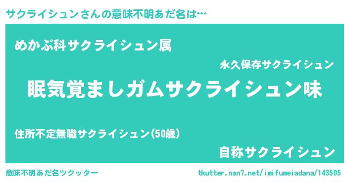 | 胡散臭い通販商品みたいなあだ名 | 『100人中100人が認めたイリジウム磁石…その名も「サクライシュン」』 |