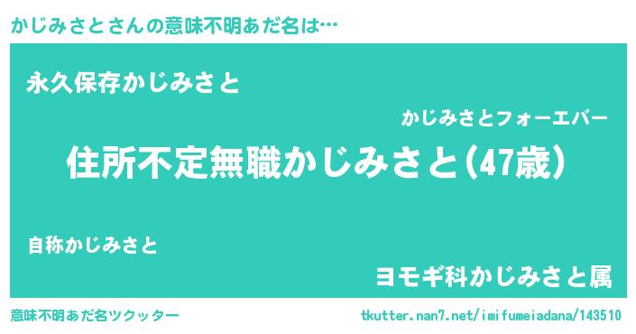 | 欧米人風あだ名 | 『かじみさと・ステッグマイヤー』 |